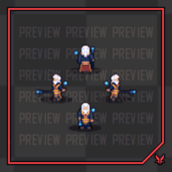 Animations: Idle(4 x 3 directions), Run (6 x 3 directions), Attack (6 x 3 directions)