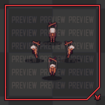 Animations: Idle (4 x 3 directions), Run (6 x 3 directions), Attack (6 x 3 directions)