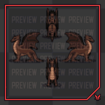 Animations: Idle (4 x 3 directions), Lift Off (6 x 3 directions), Flight (6 x 3 directions), Landing (6 x 3 directions), Attack (6 x 3 directions)