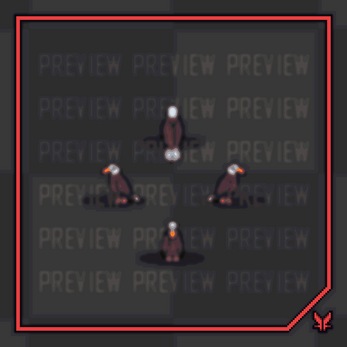 Animations: Idle (4 x 3 directions), Standing (4 x 3 directions), Lift off (6 x 3 directions) Move (6 x 3 directions), Attack (6 x 3 directions), Landing (6 x 3 directions)