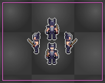 This character moves in 4 directions. It comes with a few armors and weapons from my Armory Pack which can be found in my Mega Icons Pack.